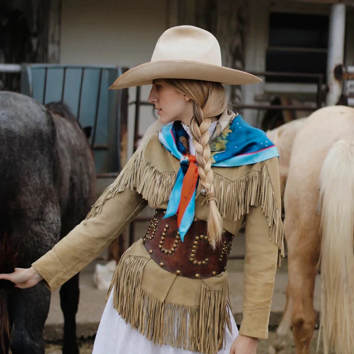 We would like to point out the heavier 14mm satin silk and hand rolled hem that sets this wild rag apart. This is a scarf that you will cherish forever as a collector’s piece or family heirloom.
