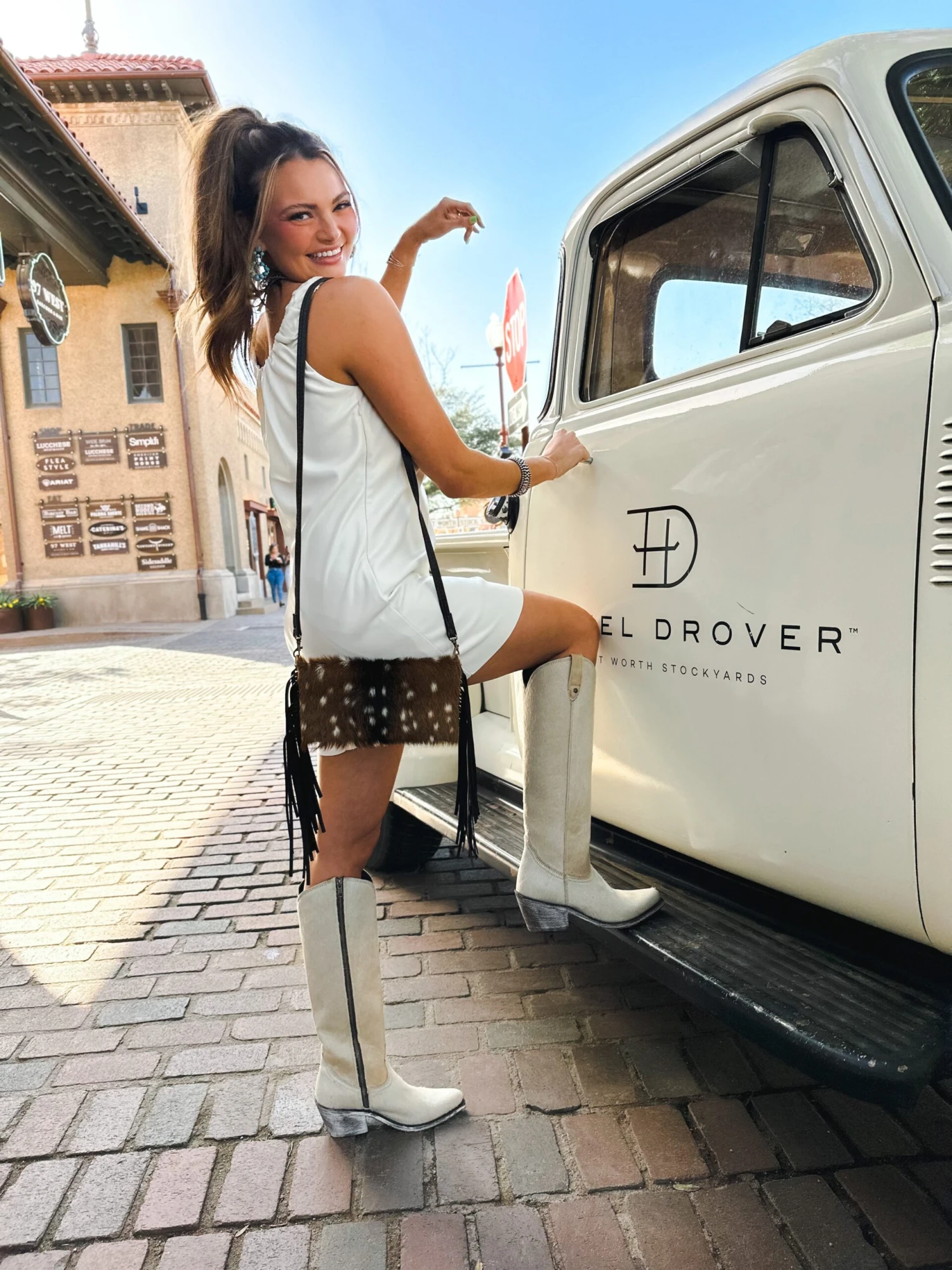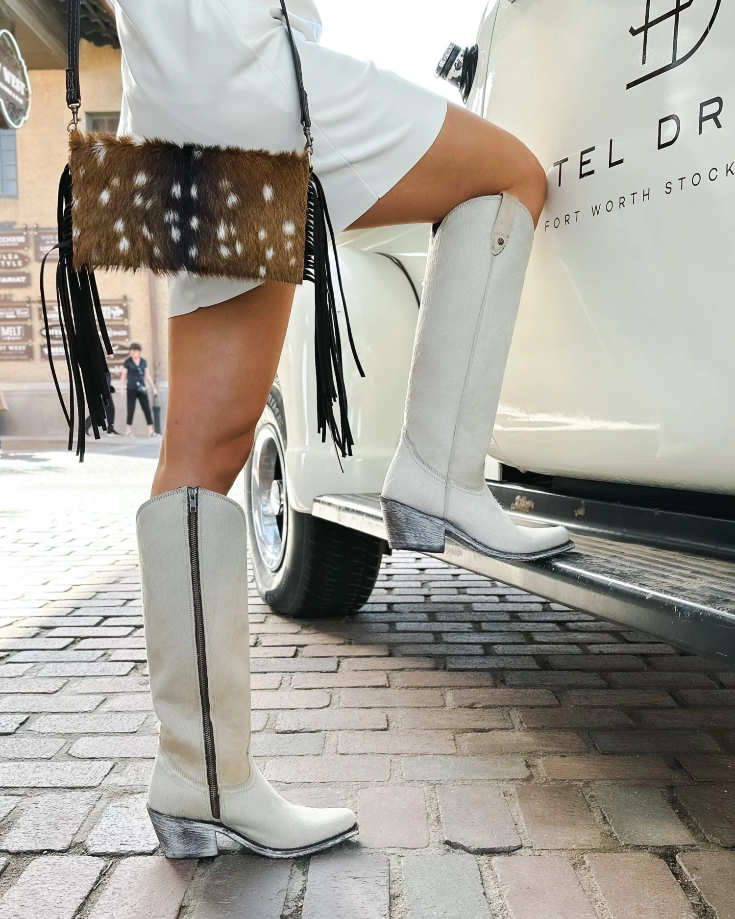 The magnetic closure ensures the safety of your belongings while providing easy access to the interior. The front of the purse features a stunning layer of soft, luxurious fur that adds texture and dimension to the design, while the sides are adorned with playful fringe that moves and sways with your every step.