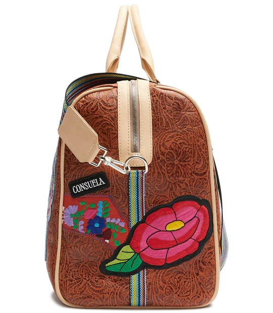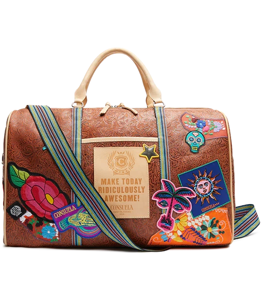 Our largest duffel style, the Weekender, is our go-to for weekends and day trips on the go. This duffel is roomy enough for all your essentials and features leather handles, an adjustable crossbody length webbing strap, two interior pockets, and two exterior pockets. If you’re looking for a TSA carry-on compatible bag, check out the Jetsetter or the Zipper Tote!