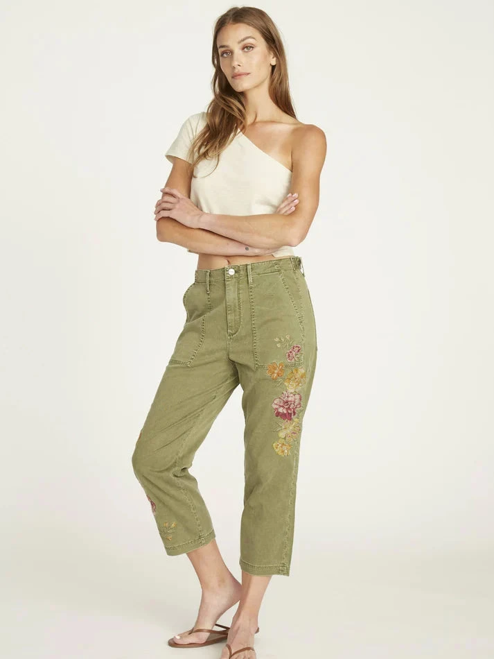 Colette Straight Cuffed Crop With Multi-color Embroidered Cuff.