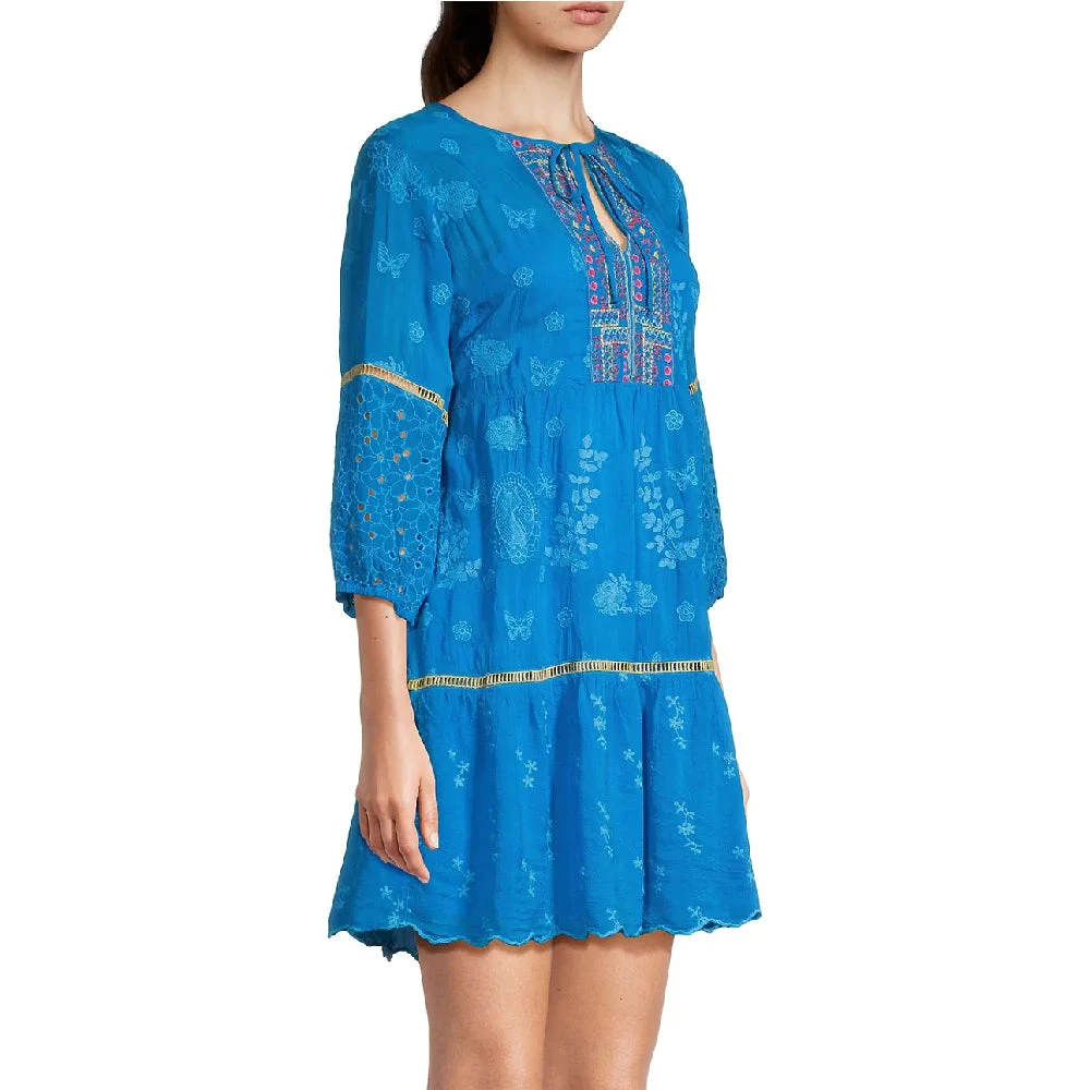 Embodying a bohemian feel, the Kit Tunic Dress makes a case for low-key elegance. A versatile choice for daily activities, this tunic is designed from a comfortable fabric and boasts a round neck, long sleeves, a scallop trim, and a placement embroidery consisting of wistful florals. Finished with a separate slip, the dress can be layered over wide-leg pants or jeans for a breezy take on daytime dressing.