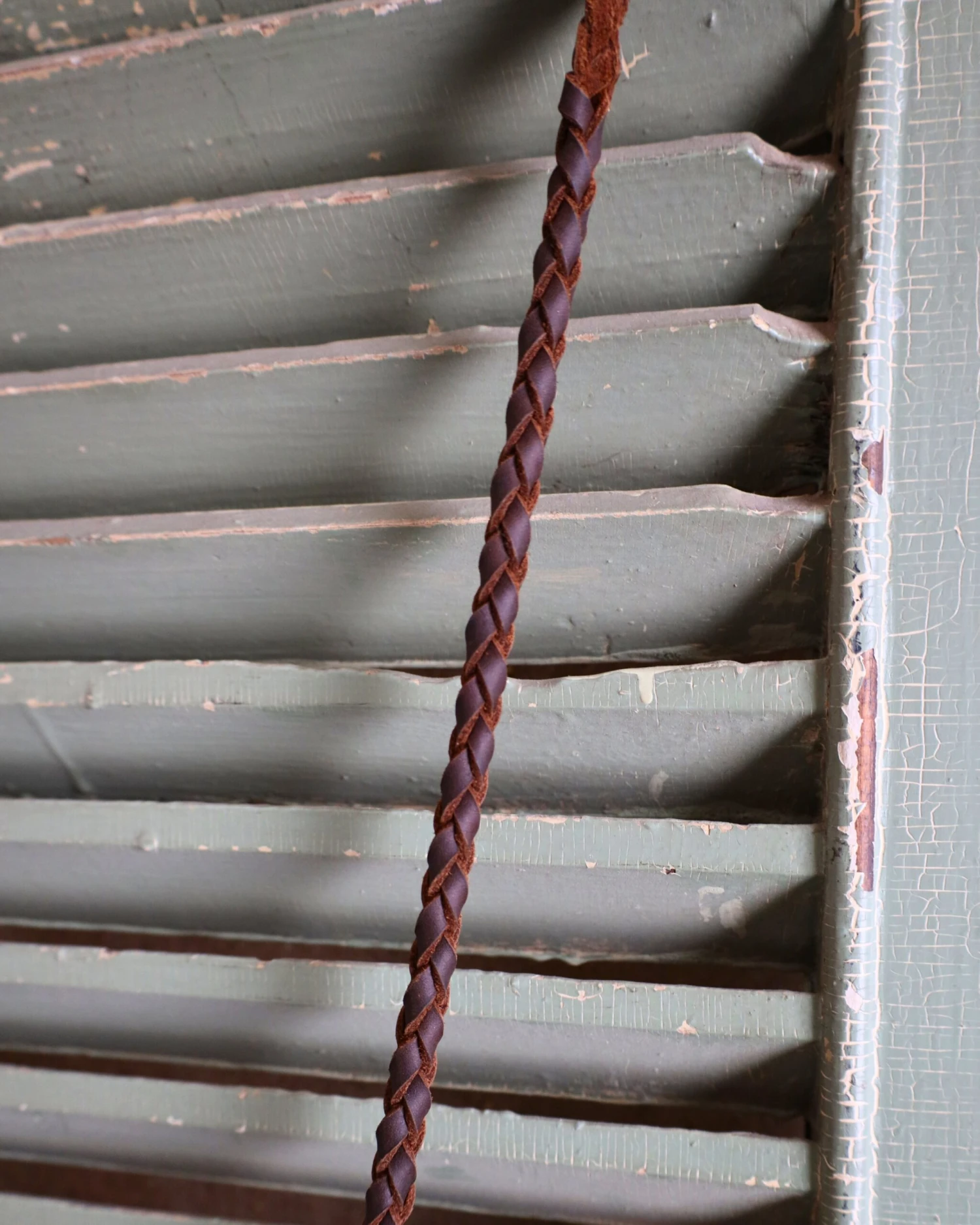 This bag also includes a detachable crossbody strap. The strap is hand braided and measures 48” from snap to snap.