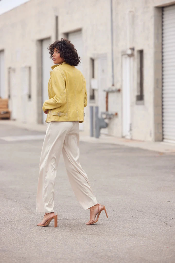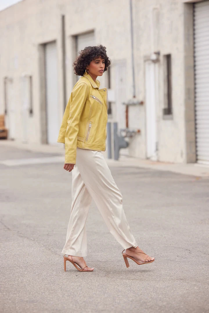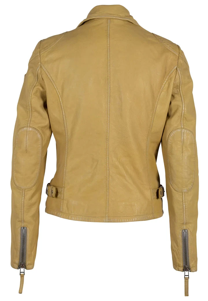 Made of 100% lambskin, the seams are polished and the zippers are contrasted to give a distressed feel. This jacket is vegetable tanned and ethically produced for the social conscious!