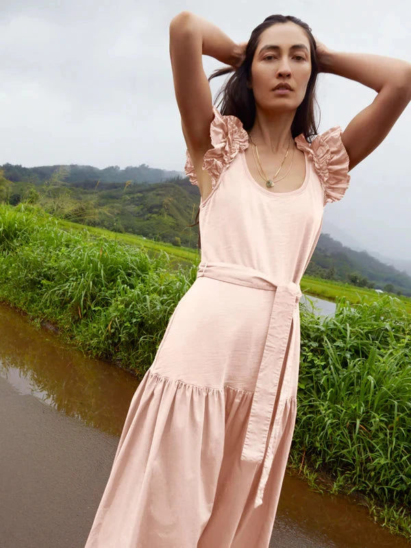 With an effortless fit and a tie belt at the waist, this dress can be worn day or night (with ease). The cascading poplin shoulder ruffles add the perfect feminine edge. (This one comes in Light Pink Millennial.)