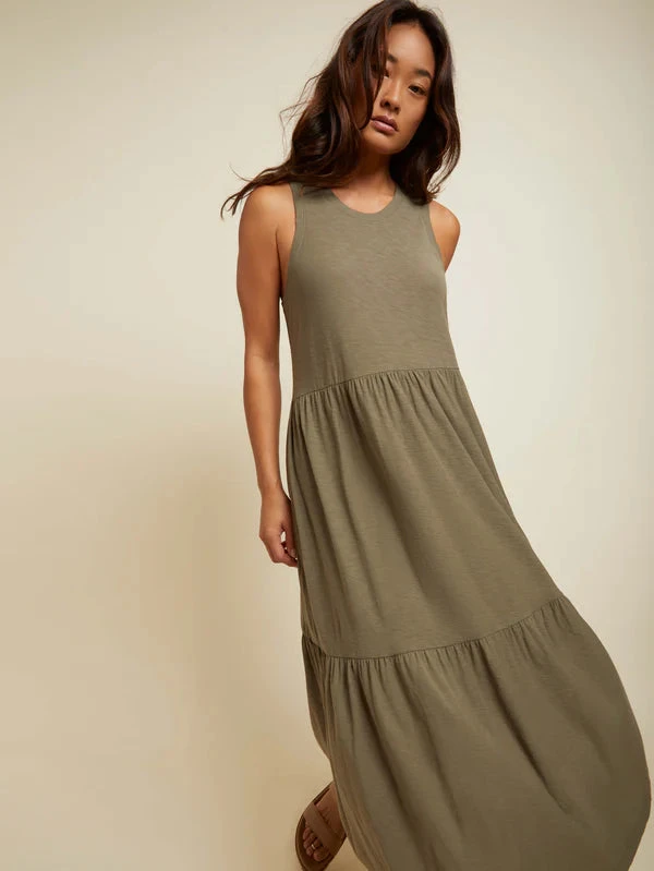 A breezy tank dress with a tiered bottom, ribbed details and a comfortable scoop neck fit. Our prediction? You’ll be living in it all season. (This one comes in Ivy)