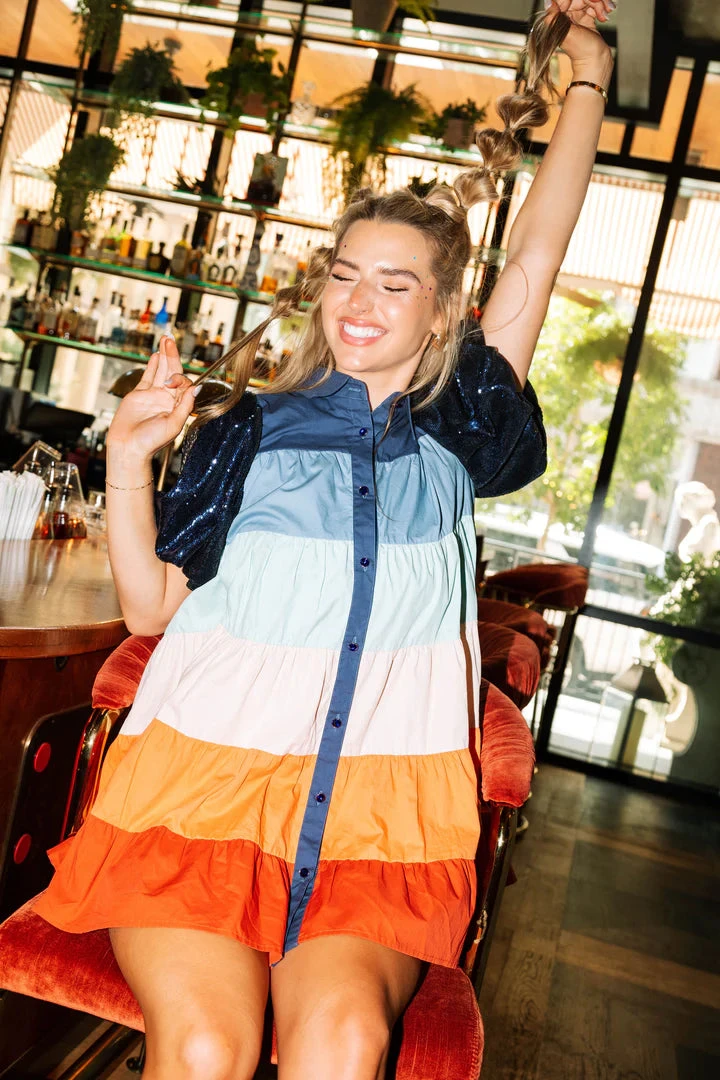 Add some spice to your closet with this colored sequin poof sleeve dress. It is a great piece for the summer and winter and is available in sizes x-small and small. Queen Of Sparkles!