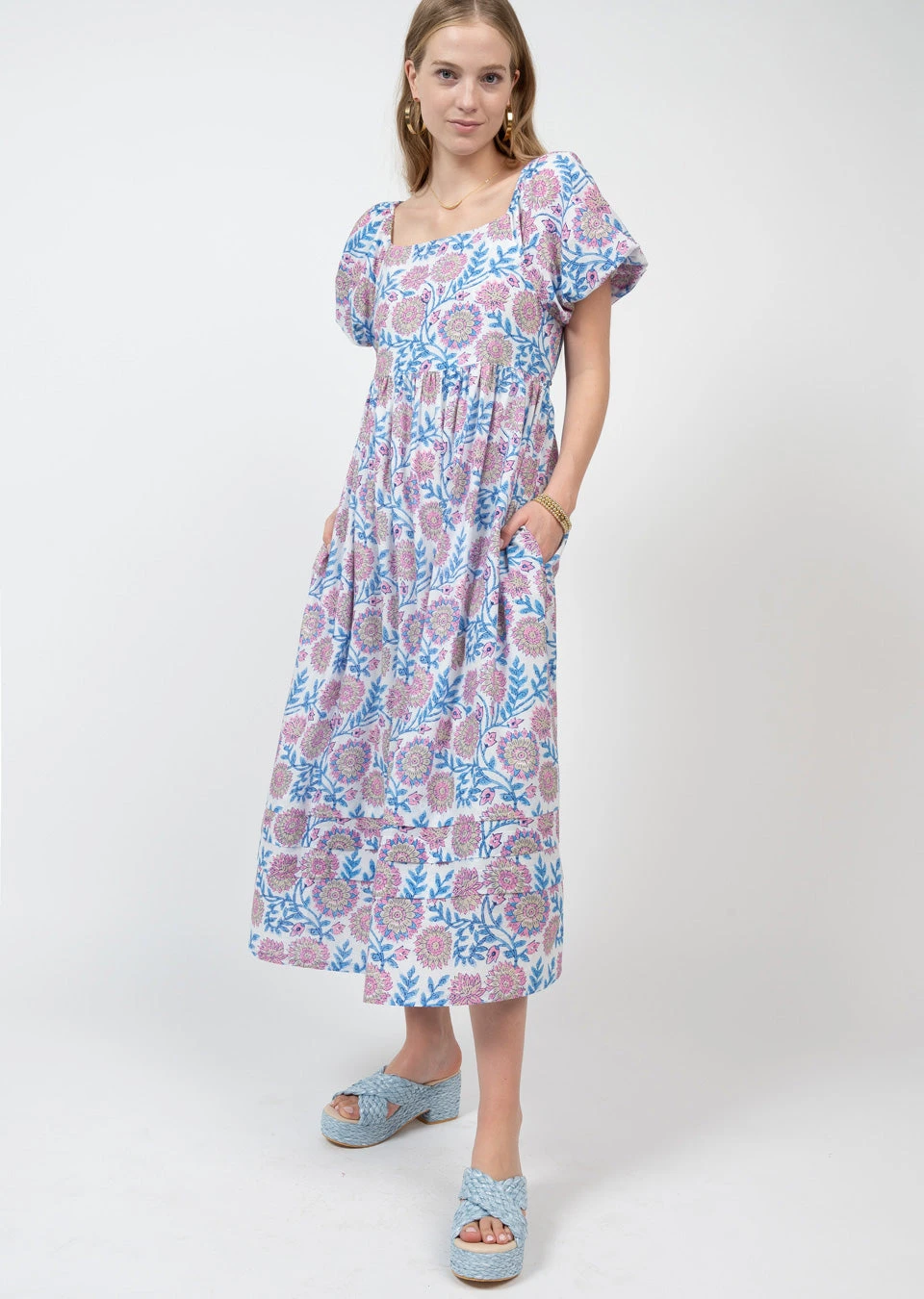 Pouf sleeves are all the rage this year, show them off in this super cute pouf sleeve midi dress by Uncle Frank in white color combination.