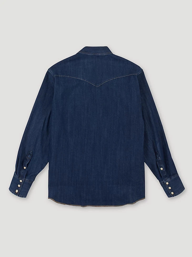 One wardrobe staple a cowboy should never be without is a work shirt that can hold its own. That’s precisely why our Cowboy Cut® work shirt is designed with hard work in mind, so you can get any job done with total confidence. Every Cowboy Cut® work Western denim snap shirt comes with all the authentic details you’d expect from a tried-and-true Wrangler® essential, including Western front and back yokes, a spread collar, two spade flap snap pockets, the Wrangler® logo riser label on the left pocket, and our decorative ‘W’ stitching. Just like the jeans in our Cowboy Cut® collection, the Cowboy Cut® Western snap denim work shirt will keep you dressed and ready for anything.